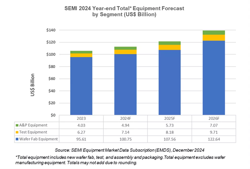 According to SEMI reports, global semiconductor equipment sales are projected to reach a record-breaking