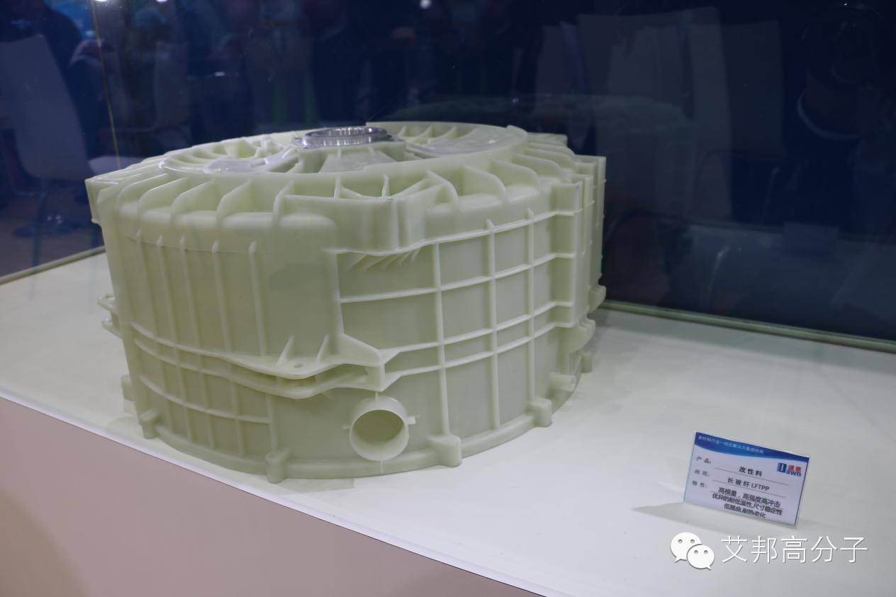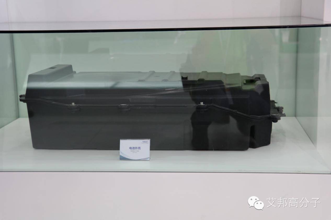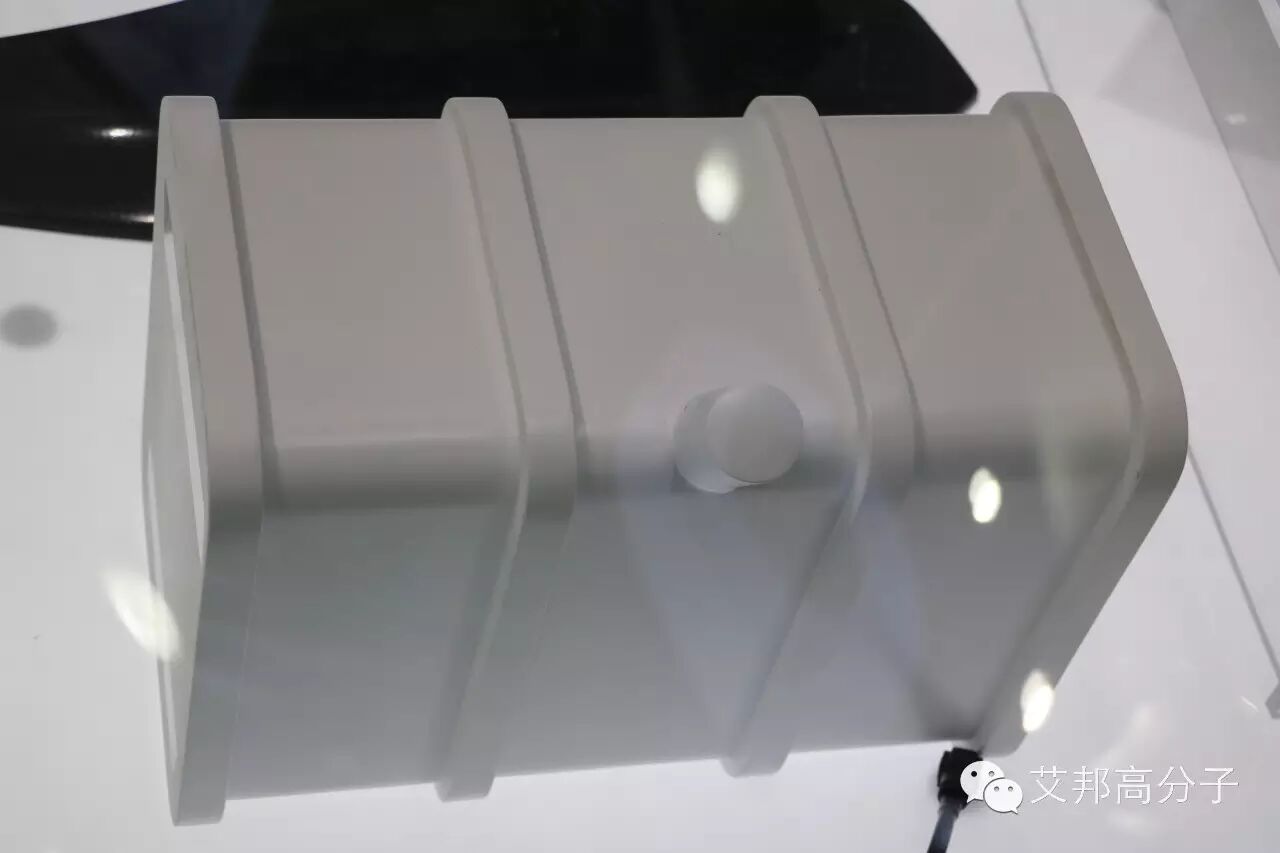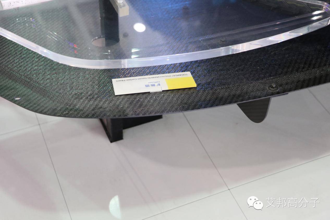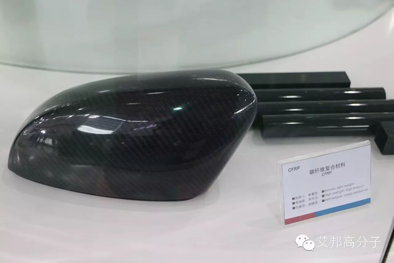 众所周知,东丽碳纤维的名头可是响当当的。不出所料,东丽在今年的橡塑展也是一如既往地主推汽车碳纤维材料。除此之外,东丽也推出了一款用在汽车引擎冷却系统上的PPS,在耐热循环性和尺寸稳定上更加出色。另一个亮点则是一款碳纤维复合材料,PP+20~30%制作的电池外壳。