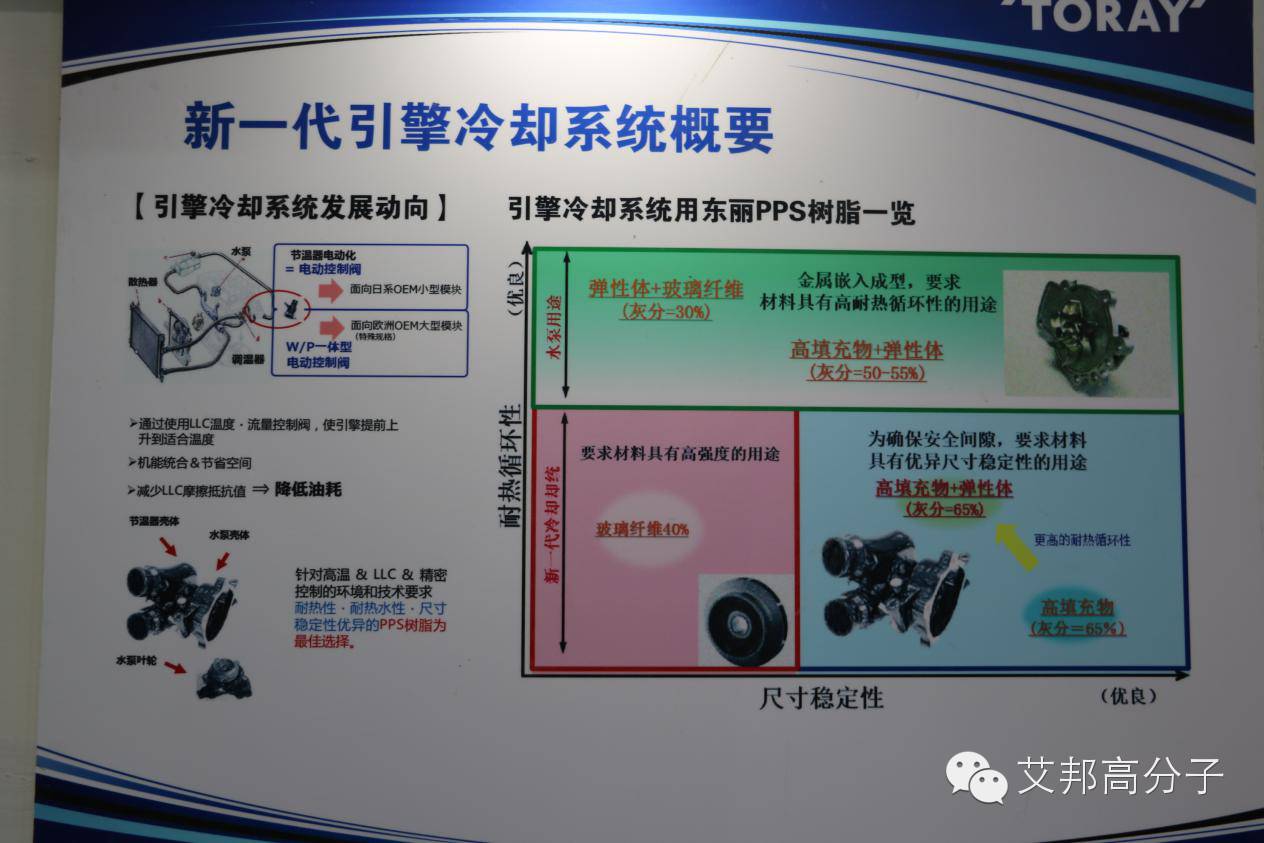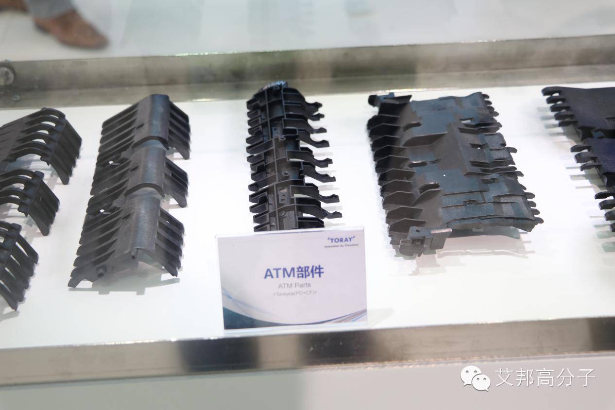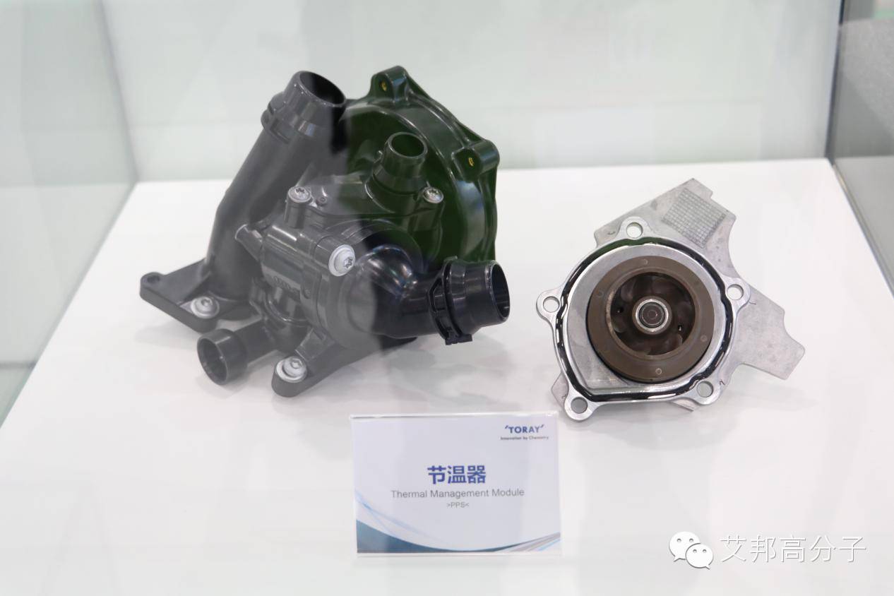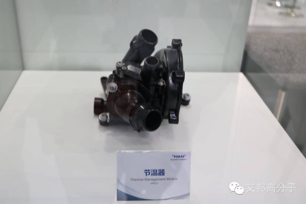 众所周知,东丽碳纤维的名头可是响当当的。不出所料,东丽在今年的橡塑展也是一如既往地主推汽车碳纤维材料。除此之外,东丽也推出了一款用在汽车引擎冷却系统上的PPS,在耐热循环性和尺寸稳定上更加出色。另一个亮点则是一款碳纤维复合材料,PP+20~30%制作的电池外壳。