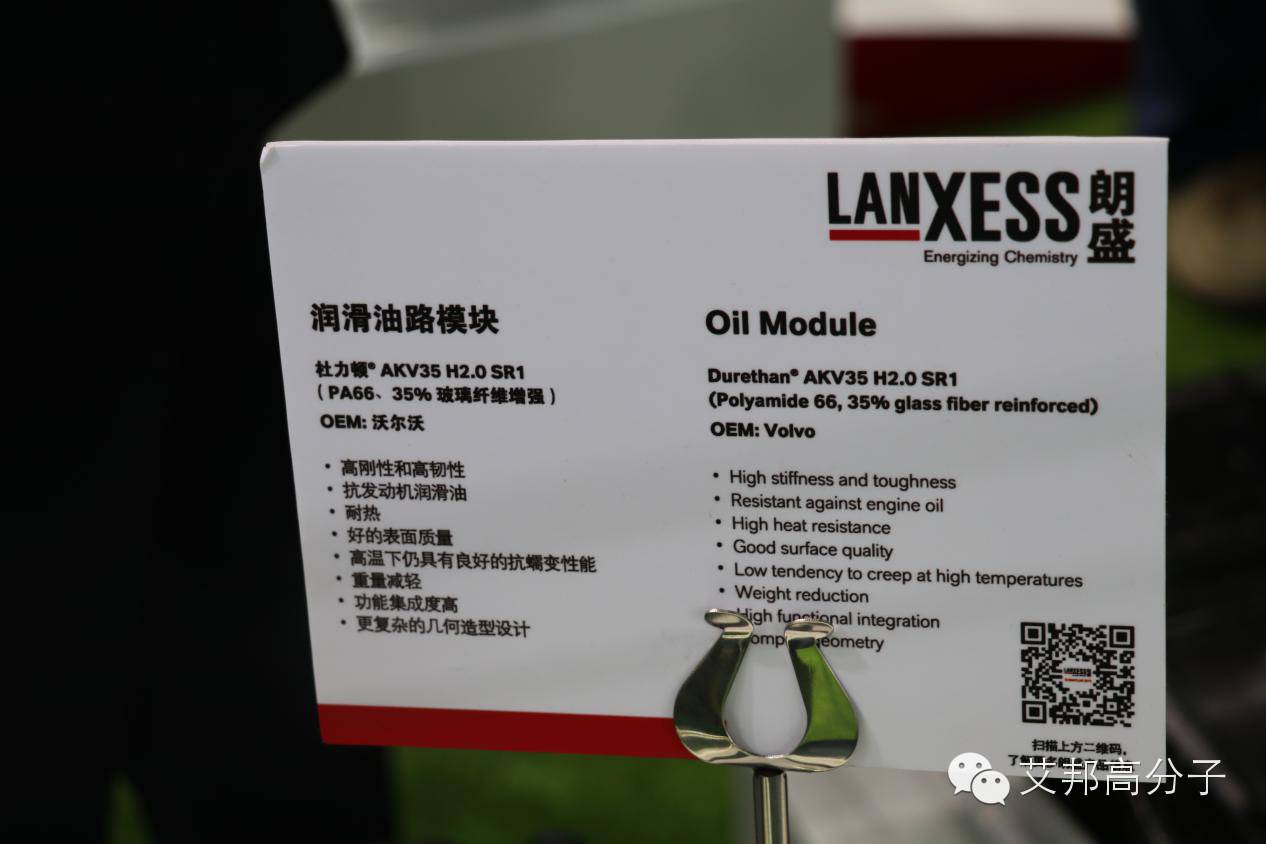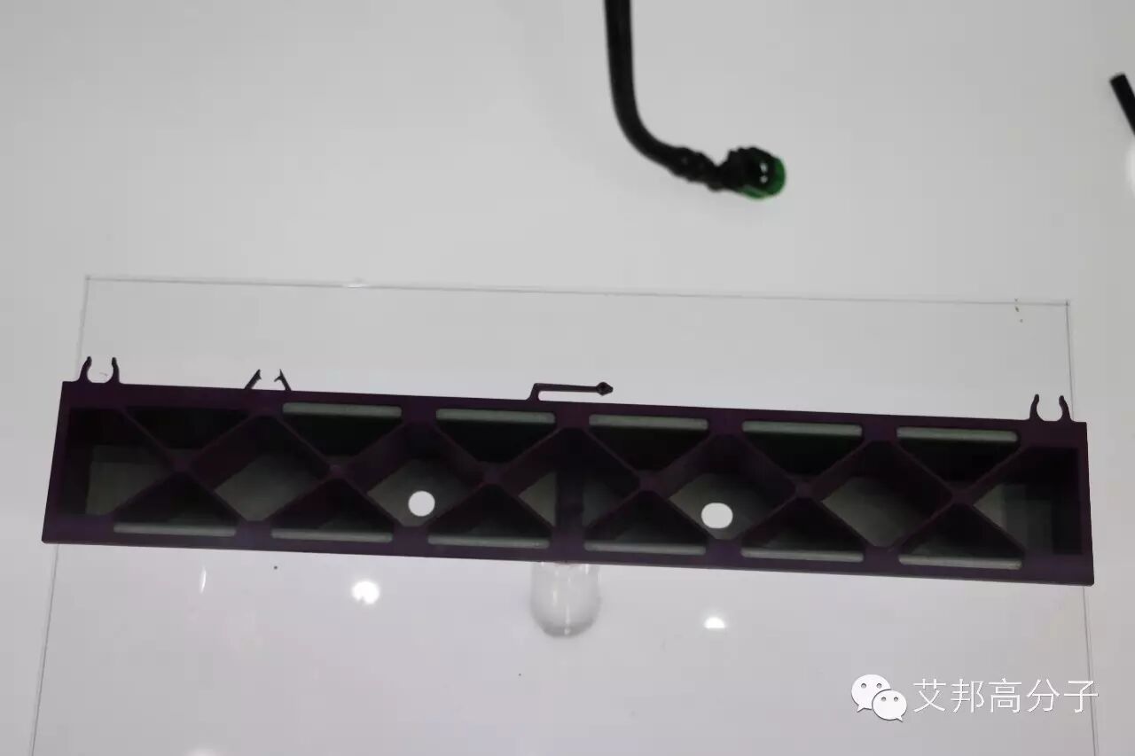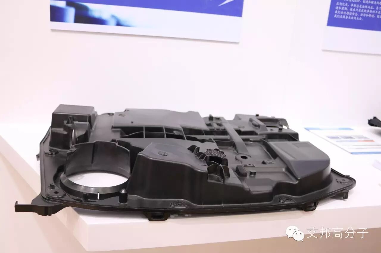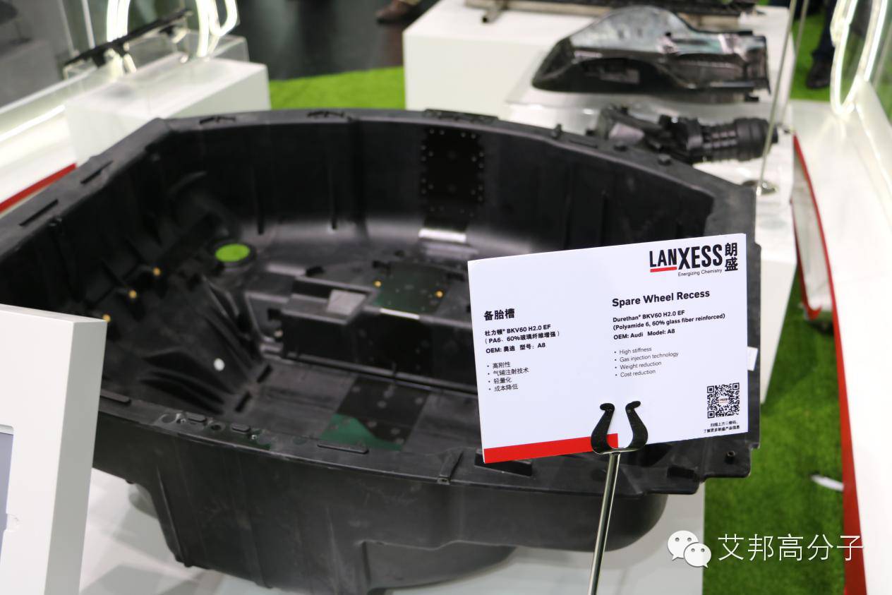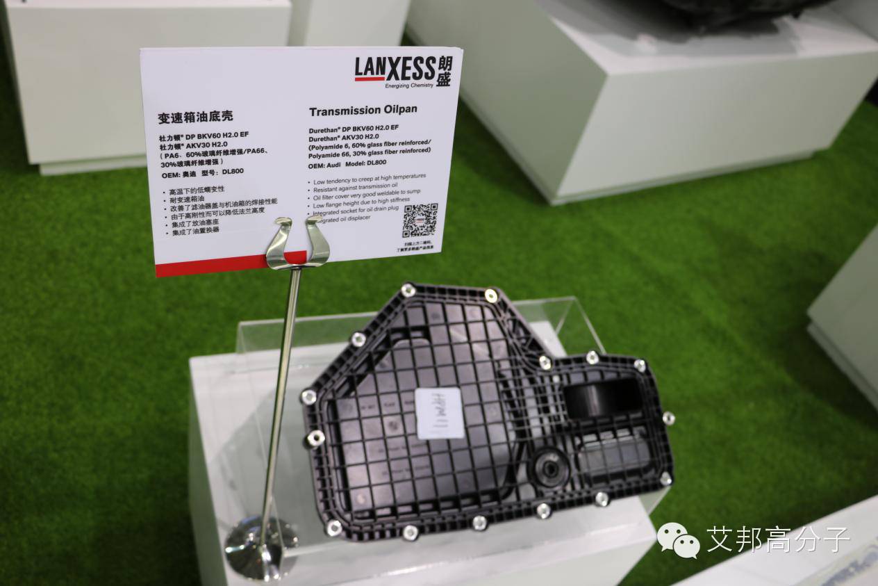 朗盛今年展会的主题以汽车材料为主,特别是在前端模块、变速箱油底壳、发动机油底壳、备胎槽更是采用PA6+60%玻纤增强材料,目前应用在奥迪A8上。