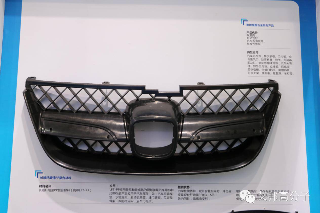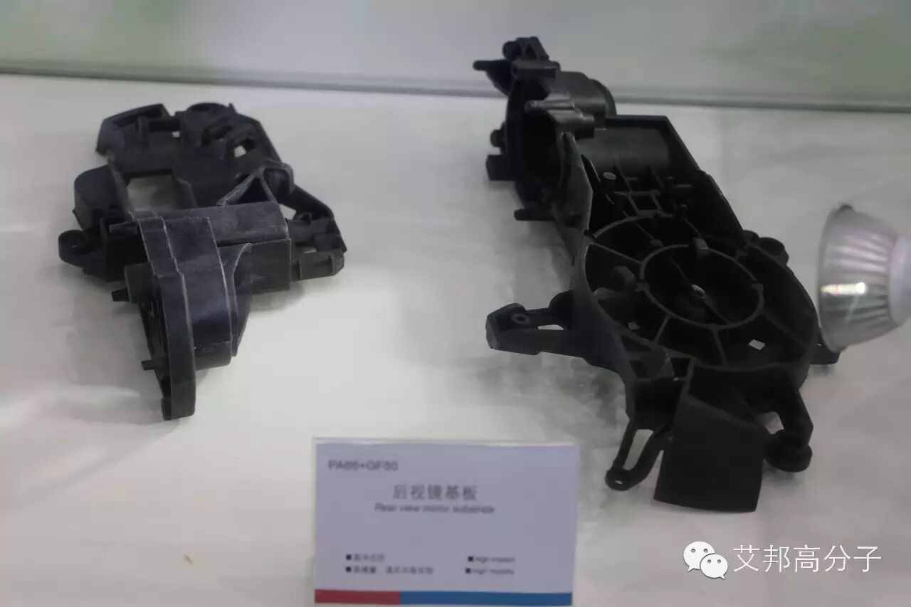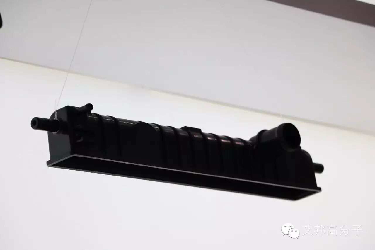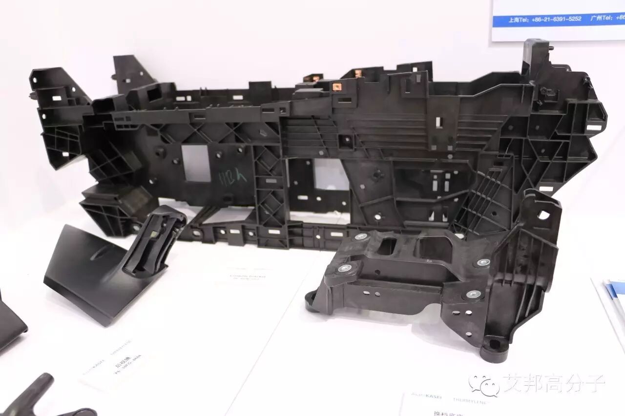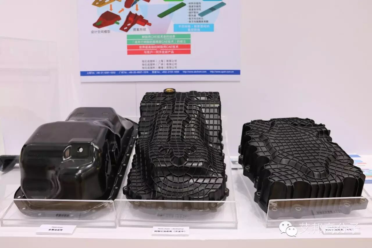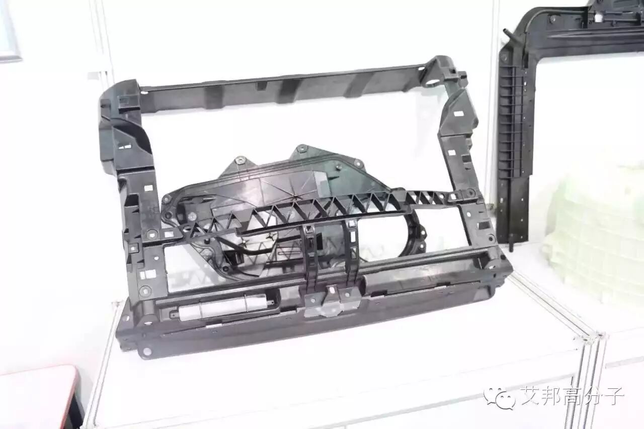 朗盛今年展会的主题以汽车材料为主,特别是在前端模块、变速箱油底壳、发动机油底壳、备胎槽更是采用PA6+60%玻纤增强材料,目前应用在奥迪A8上。