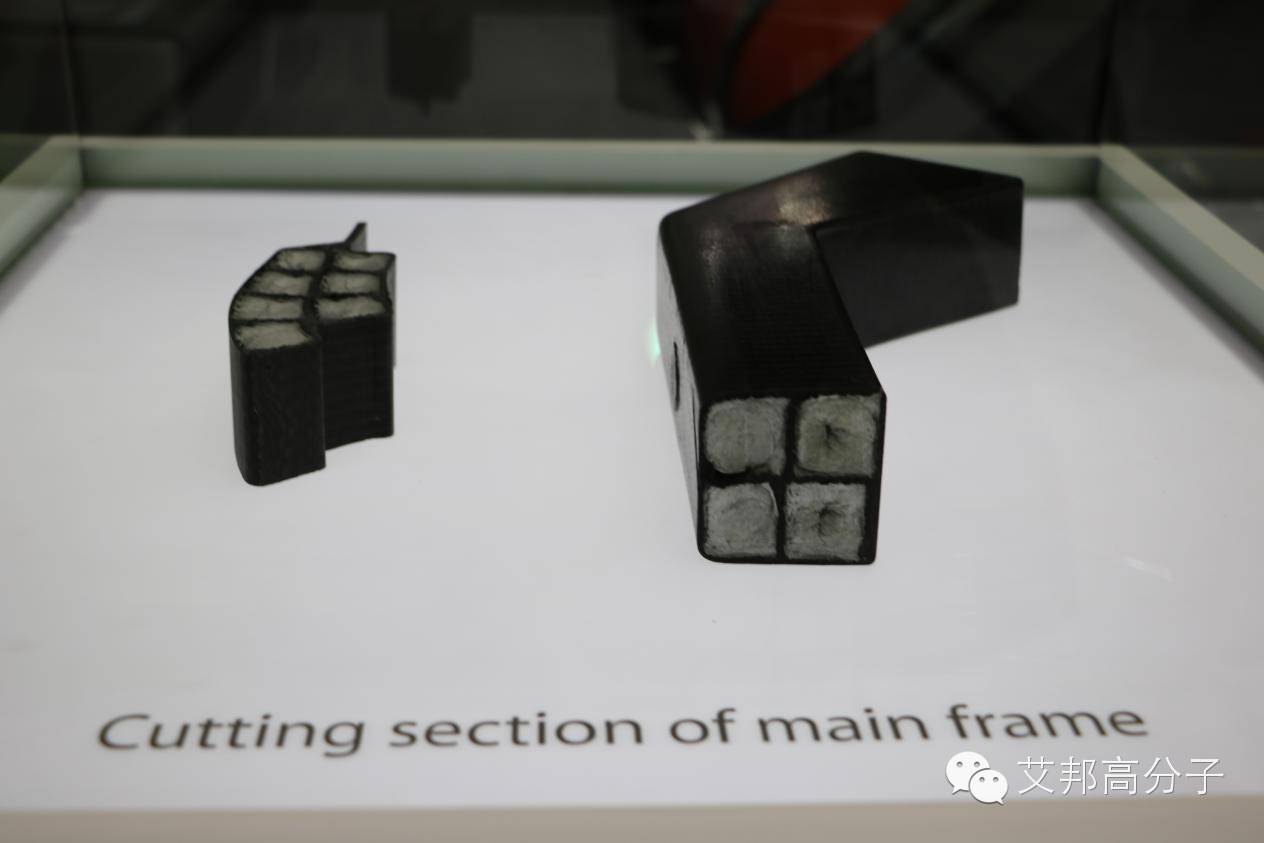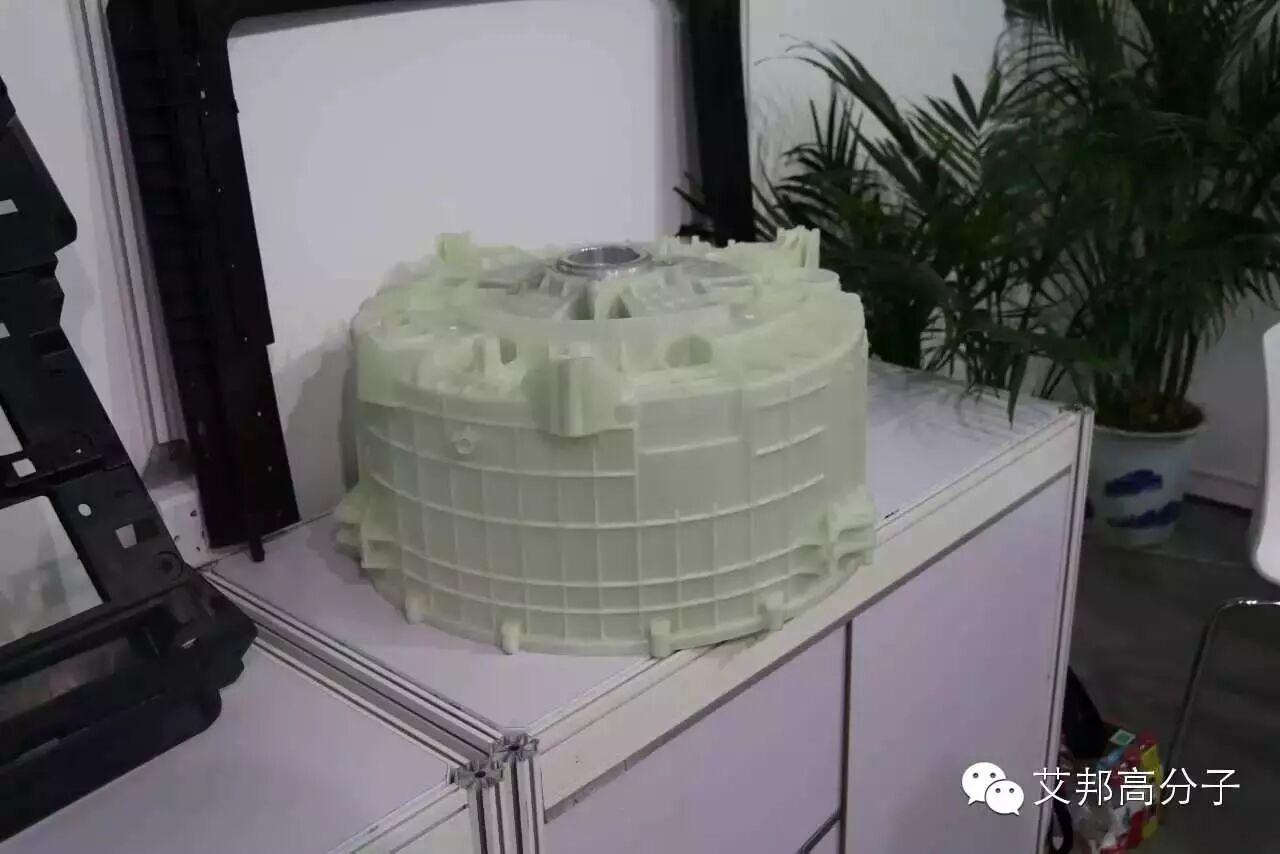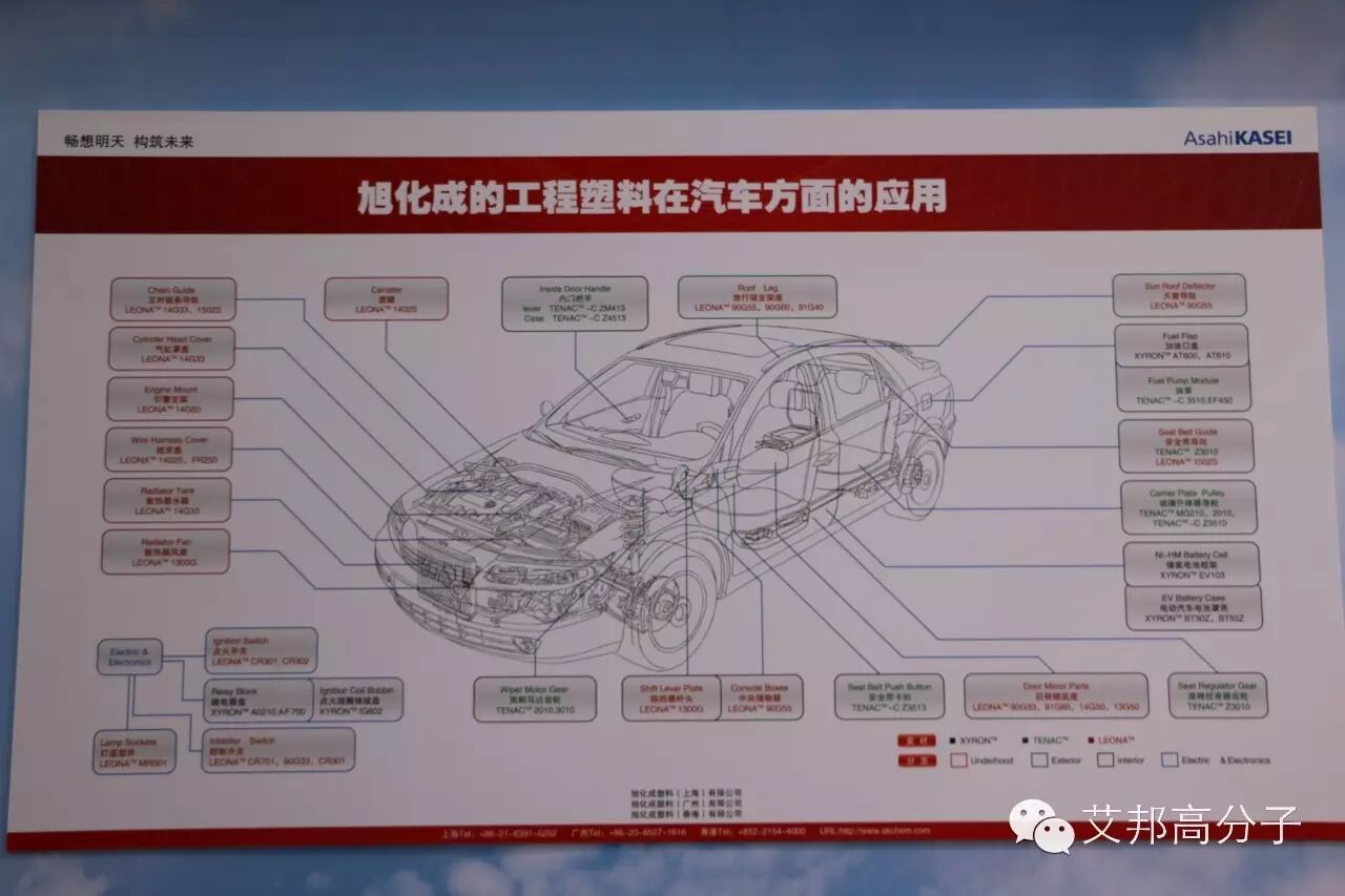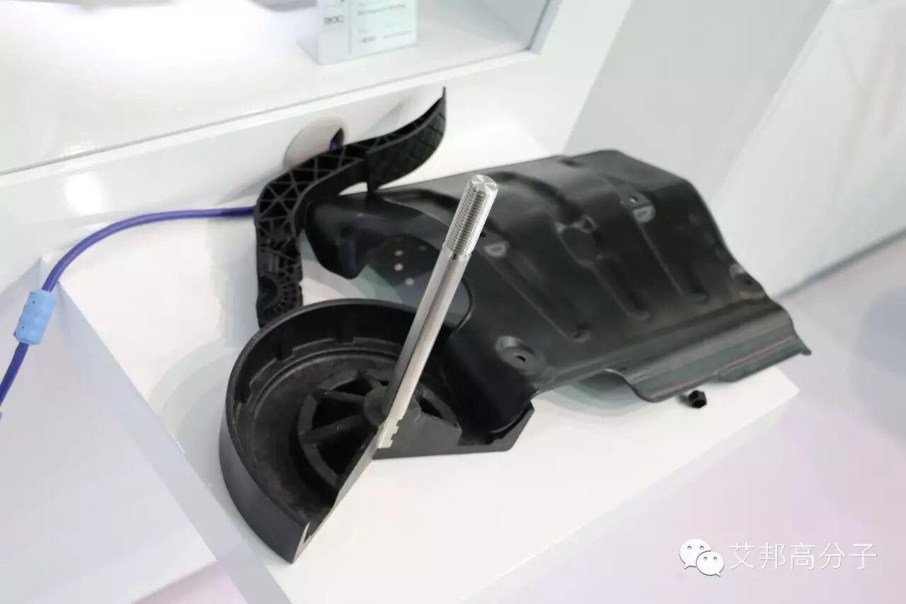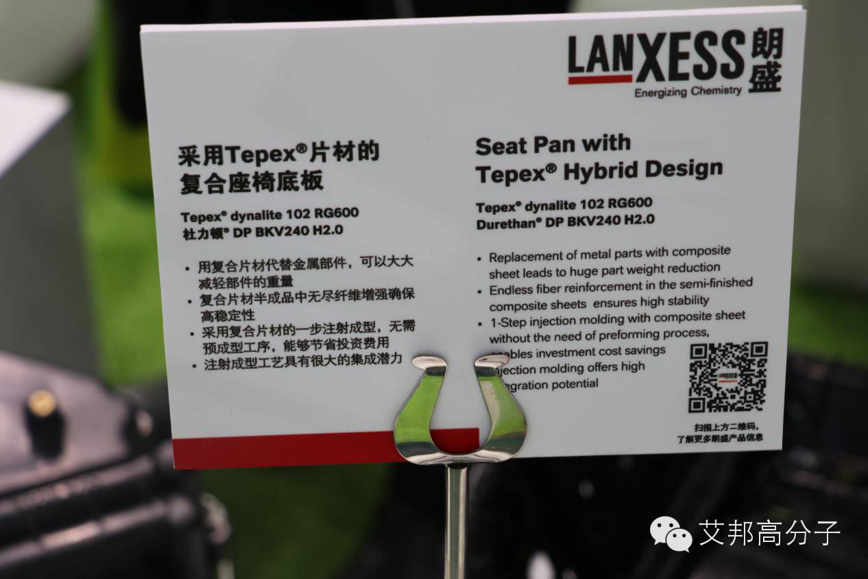 朗盛今年展会的主题以汽车材料为主,特别是在前端模块、变速箱油底壳、发动机油底壳、备胎槽更是采用PA6+60%玻纤增强材料,目前应用在奥迪A8上。